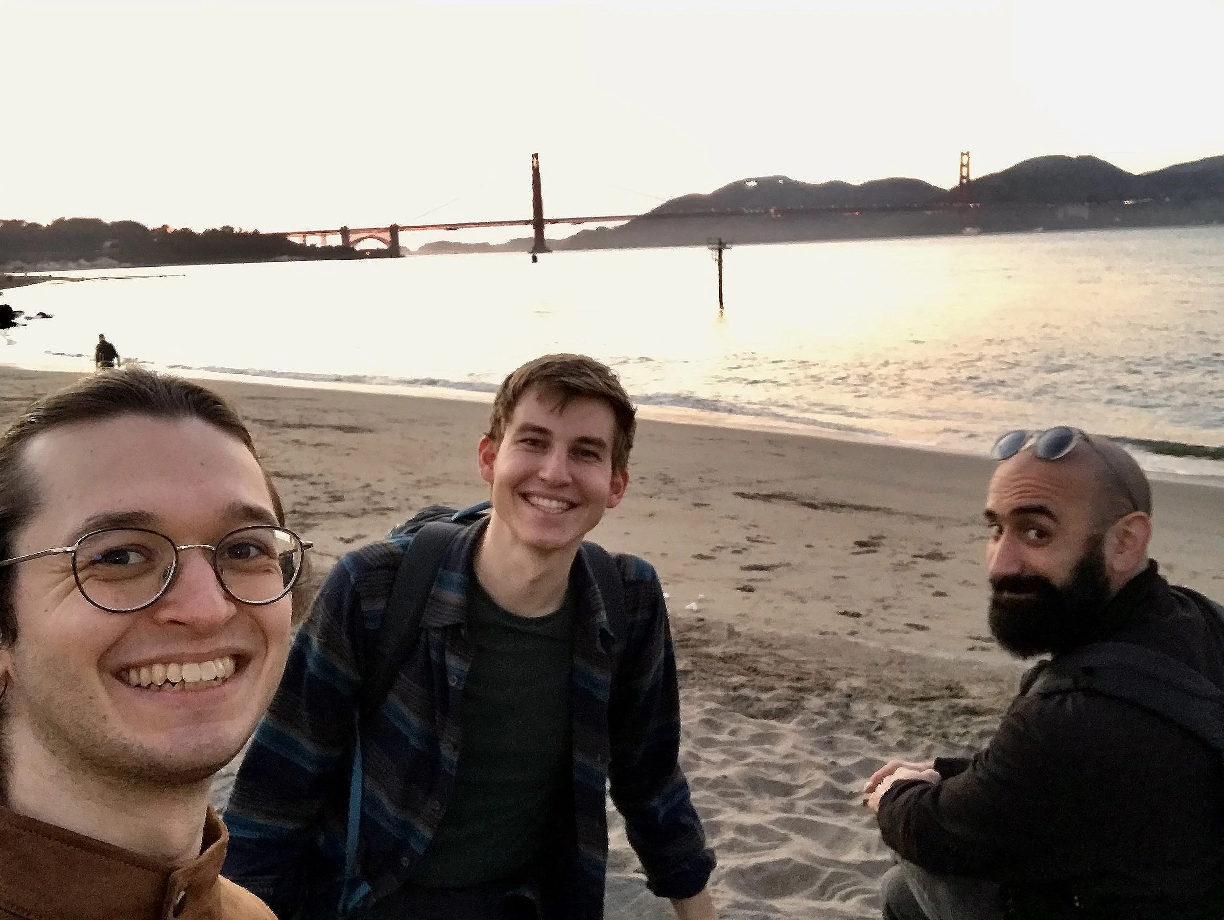 From r. to l.: Lefteris, Gabriele, and me with the Golden Gate Bridge faintly in the back.